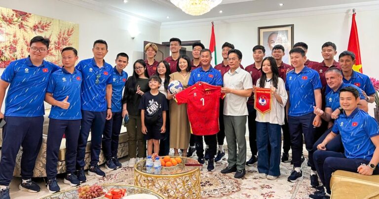 Le matin du 11 octobre, heure locale, l'équipe vietnamienne U.23 a visité et interagi avec l'ambassade du Vietnam aux Émirats...